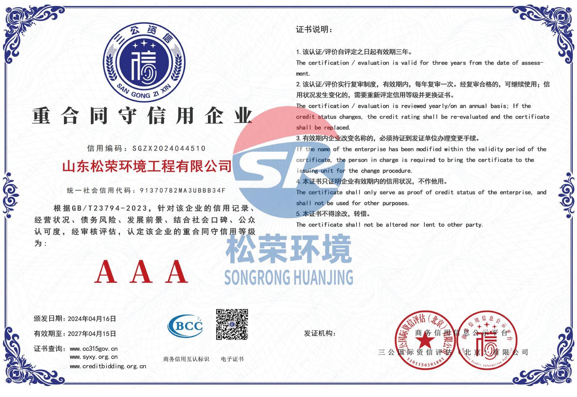 松荣证书